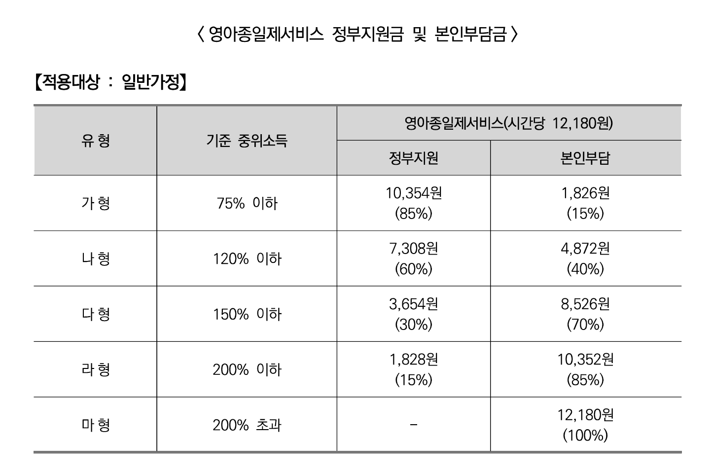 - 가구 기준 중위소득 200% 이하인 가정(정부지원 대상)